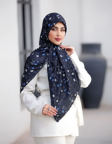 روسری نخی قواره 140.ابی سفید