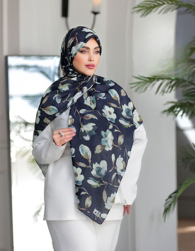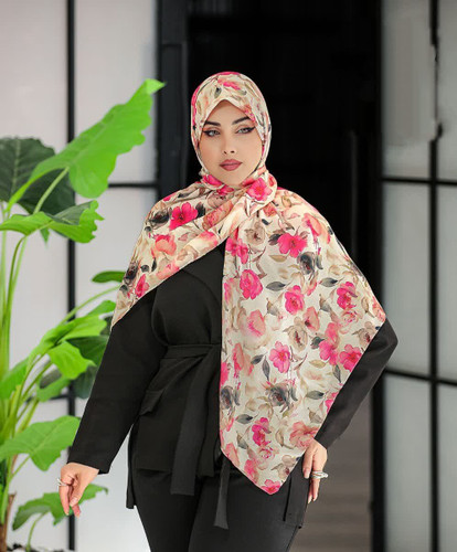 روسری نخ حریر قواره120با طرح گلهای بهاری کد277