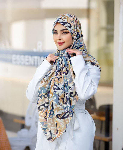 روسری نخی 4 فصل قواره بزرگ با طرح ابرنگی کد1289