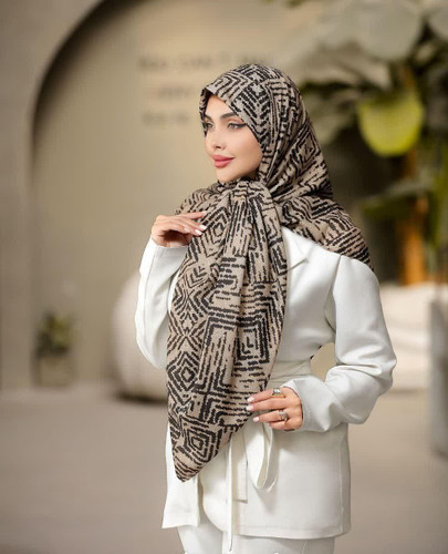 روسری نخی 4 فصل قواره بزرگ با طرح هندسی کد1290
