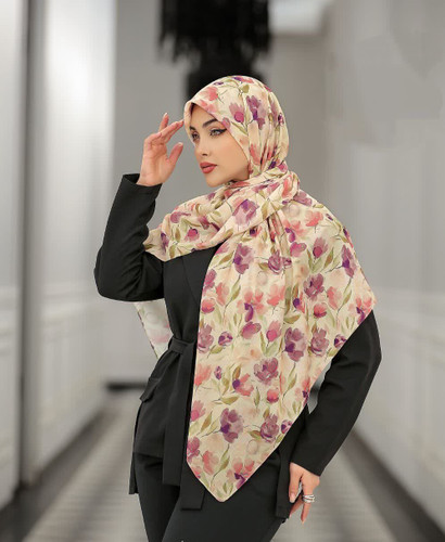 روسری نخی 4 فصل قواره بزرگ با طرح گلهای بهاری ابرنگی کد1322