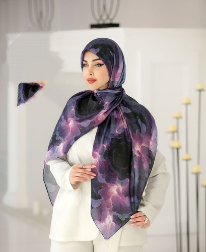 روسری نخی قواره 140.ابی کاربنی .بنفش