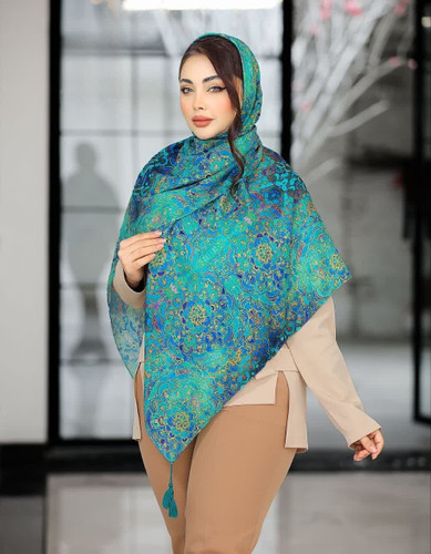 روسری نخی 4 فصل قواره بزرگ با طرح سنتی ایرانی کد 1346