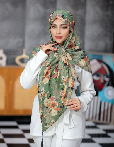 روسری نخی 4 فصل قواره بزرگ با طرح گلهای بهاری کد267