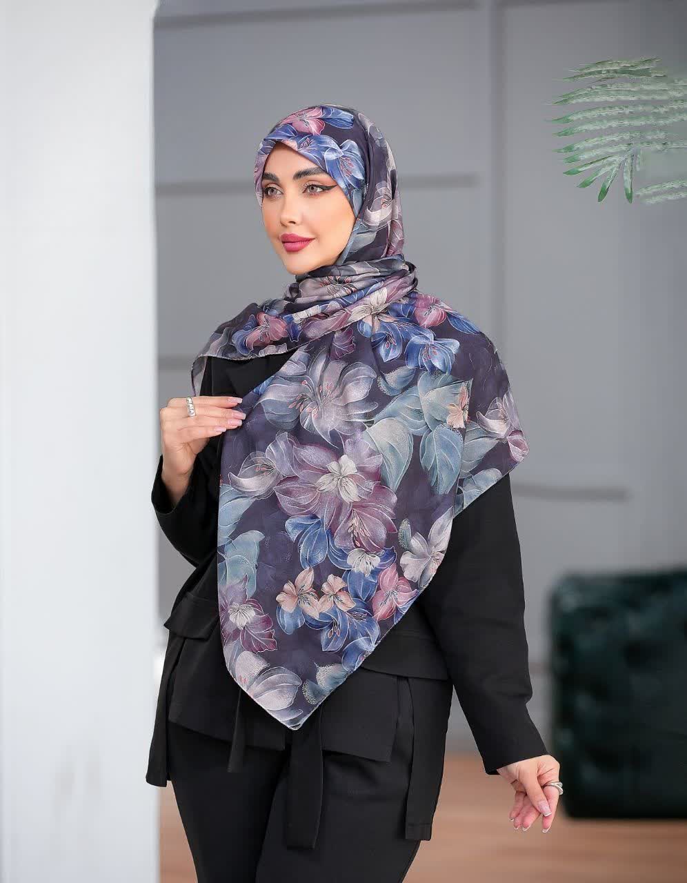 روسری نخی 4 فصل قواره بزرگ با طرح گل زمینه مشکی بهاری کد298ناموجود