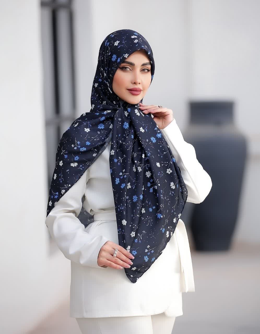 روسری نخی 4 فصل قواره بزرگ با طرح گلهای بهاری کد 1139