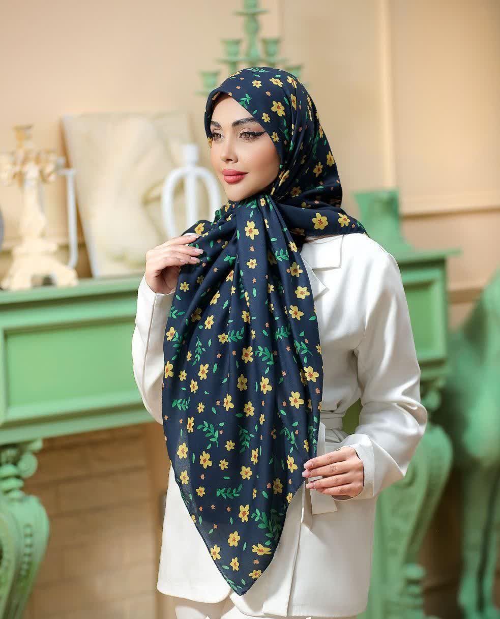 روسری نخی 4 فصل قواره بزرگ با طرح گلهای بهاری کد 805