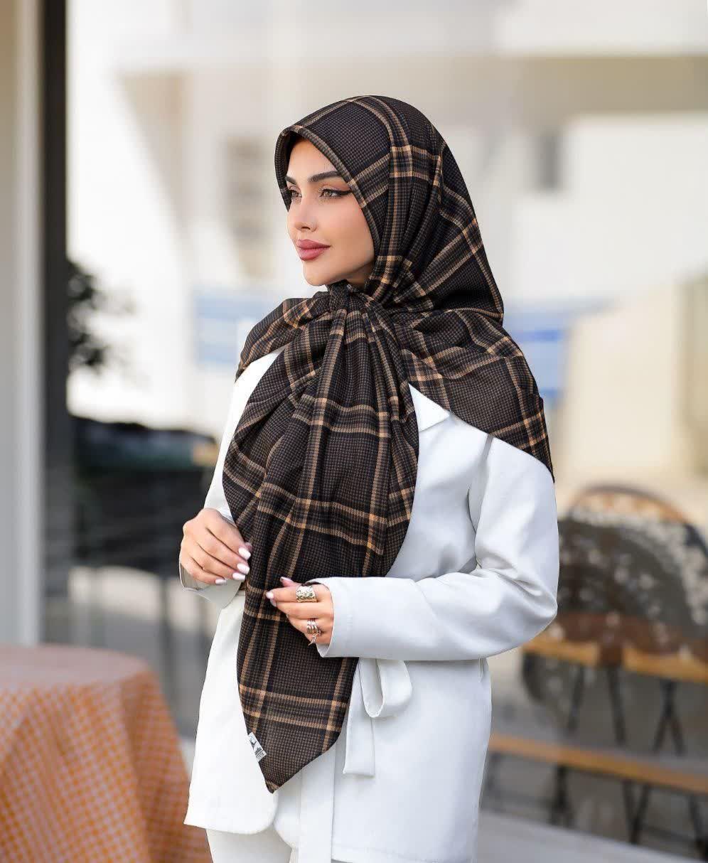 روسری نخی 4 فصل قواره بزرگ با طرح چهارخونه کد 1538