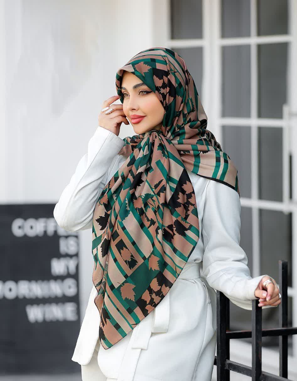روسری نخی قواره 140.سبز وقهوه ایی