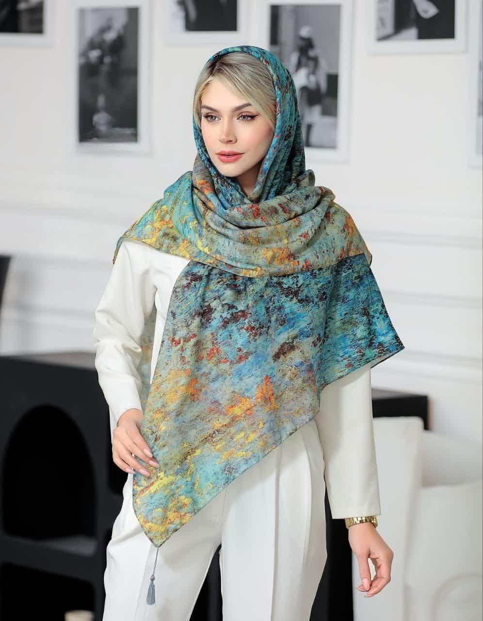 روسری نخی 4 فصل قواره بزرگ با طرح ابرنگی کد1289