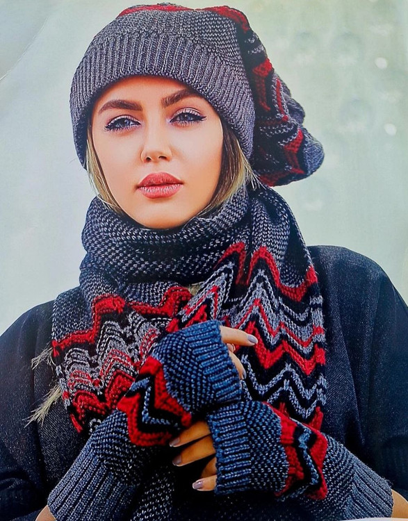 ست سه تکه کلاه وشال وساق دست مدل الدورا