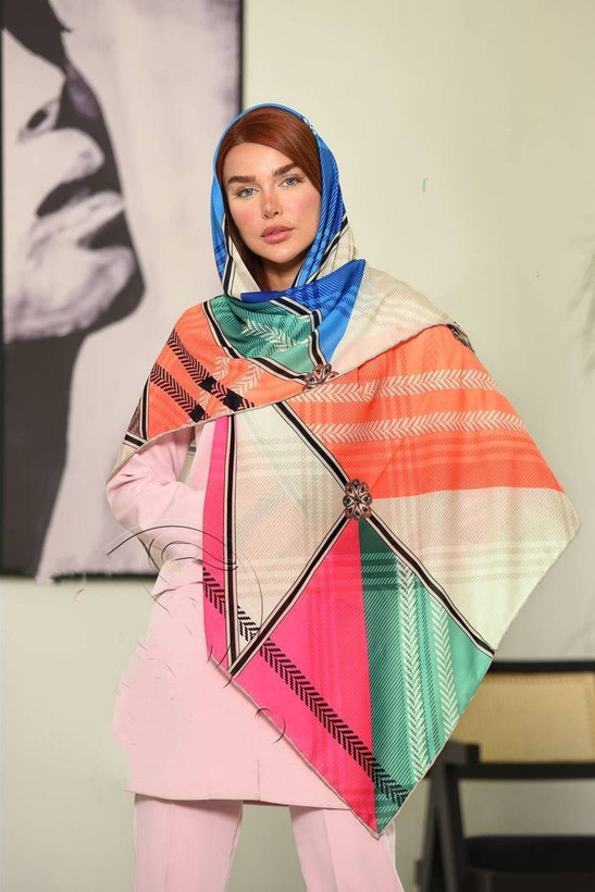 روسری نخی 4 بهاره-پاییزه قواره بزرگ با طرحهای هندسی