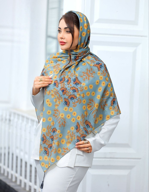روسری نخی 4 فصل قواره بزرگ با طرح گلهای بهاری کد818