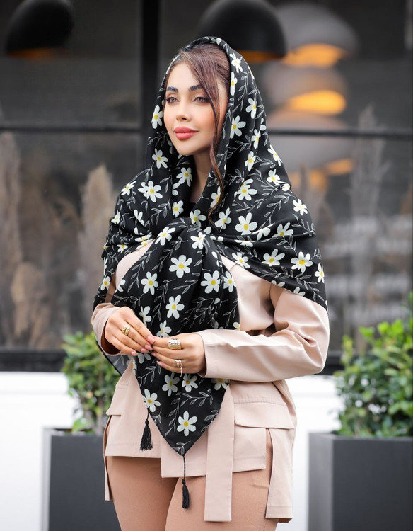 روسری نخی 4 فصل قواره بزرگ با طرح گلهای بهاری کد797