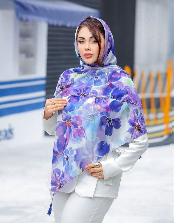 روسری نخی 4 فصل قواره بزرگ با طرح گلهای بهاری کد695