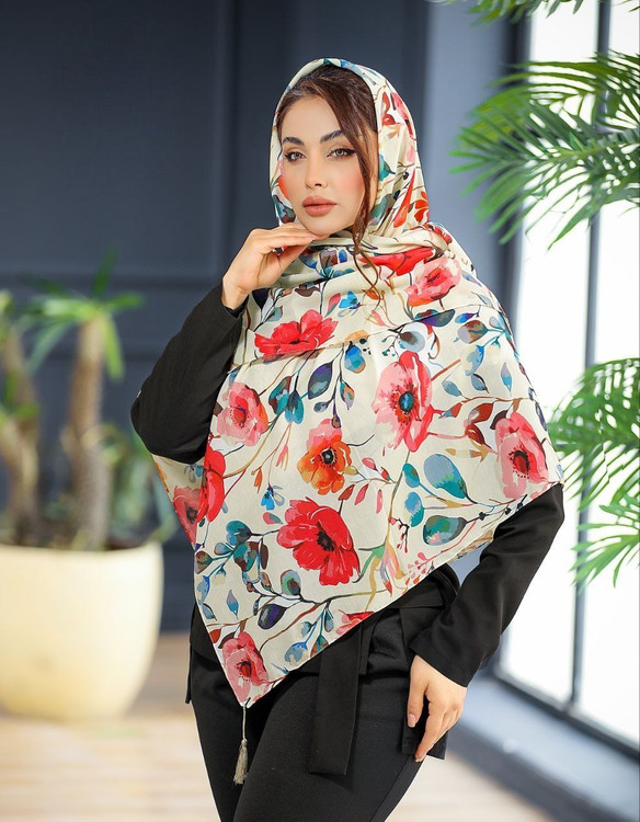 روسری نخی 4 فصل قواره بزرگ با طرح گلهای بهاری کد617