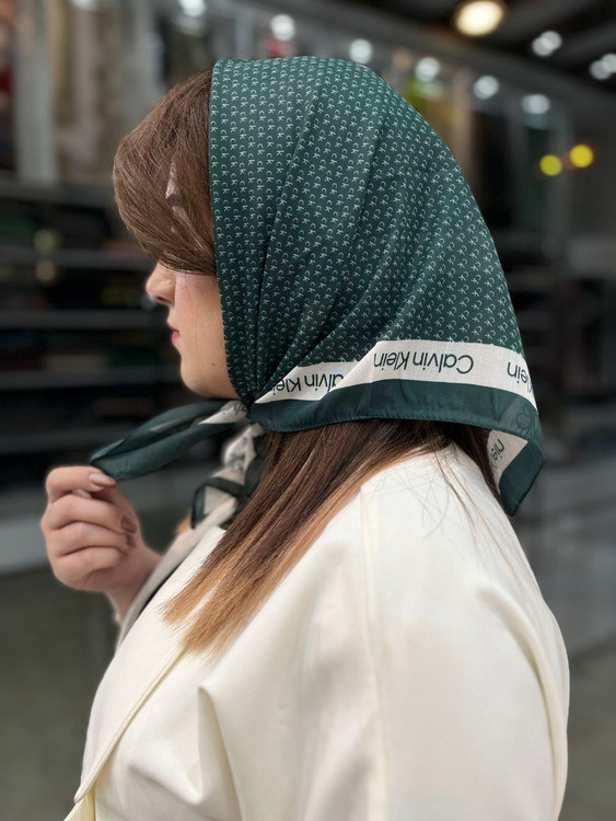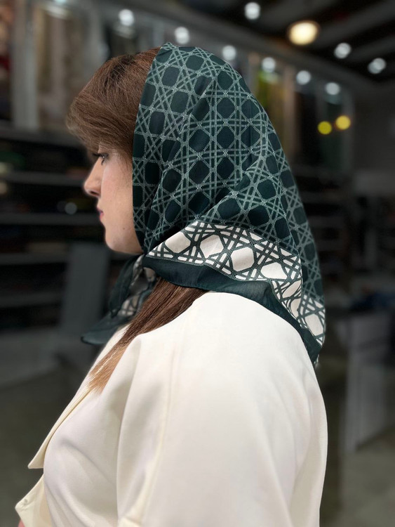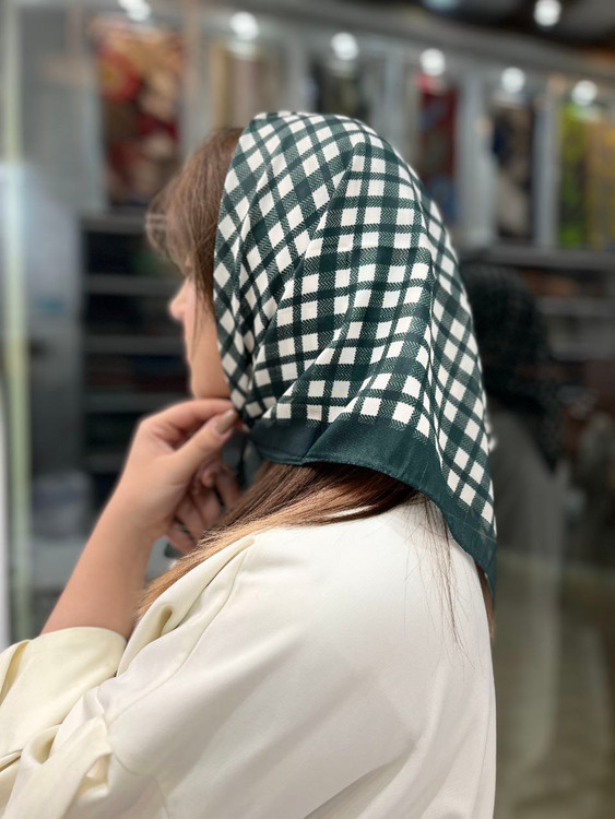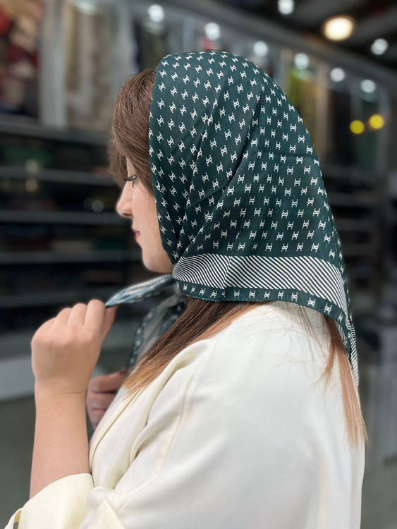 مینی اسکارف نخی سبز تیره طرح مارک
