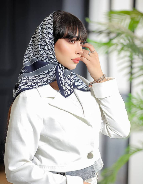 مینی اسکارف سورمه ایی سفید، درطرح مارکهای مختلف