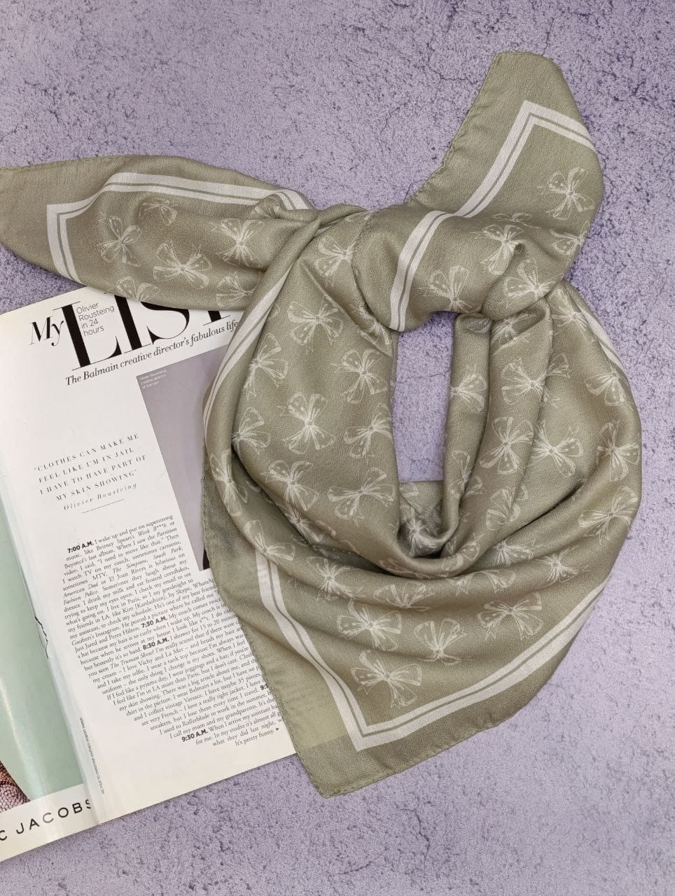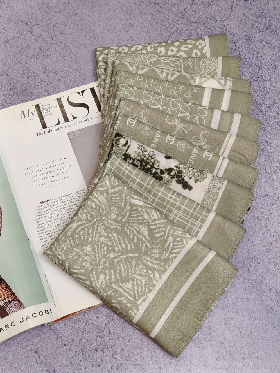 مینی اسکارف نخی سبز تیره قواره 70 با طرح مارکهای مختلف دقیقا همونه که میخوای!