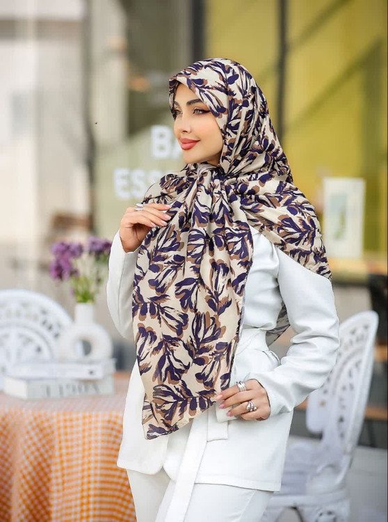روسری نخی 4 فصل قواره بزرگ با طرح گلهای بهاری کد1392
