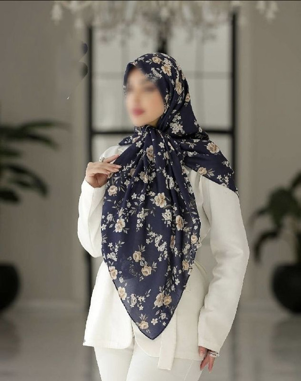 روسری نخی 4 فصل قواره بزرگ با طرح گلهای بهاری کد1717
