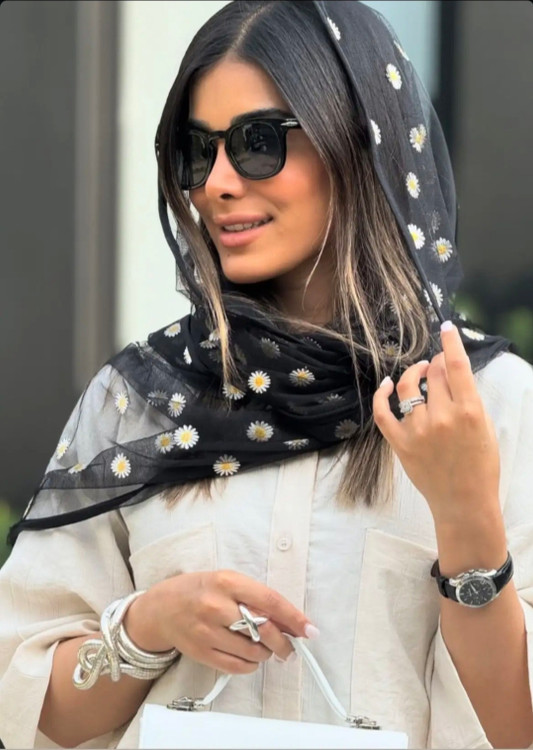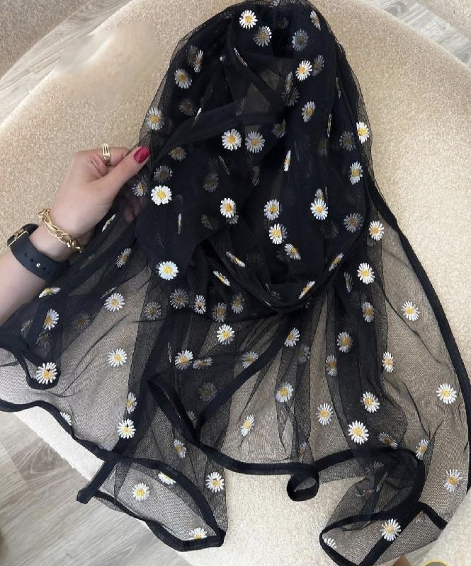 شال توری گلدوزی شده طرح بابونه های سفید گلدوزی شده وارداتی