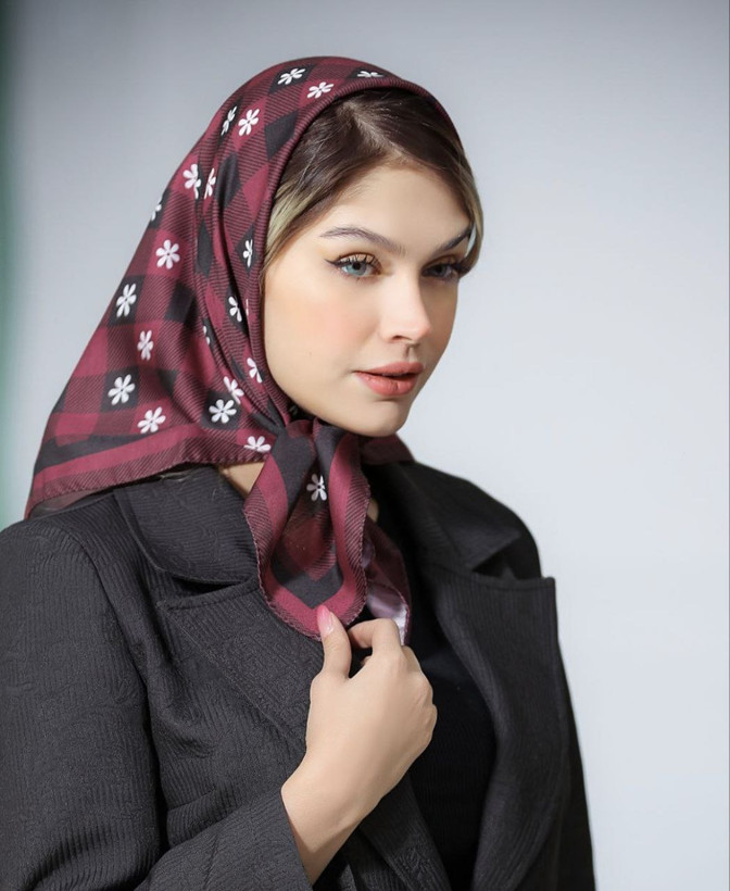 مینی اسکارف نخی رنگ چری، طرح مارک