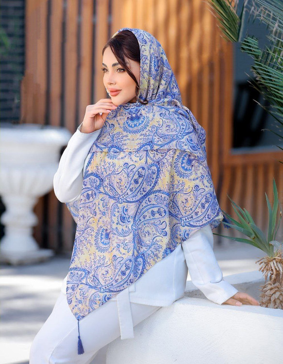 روسری نخی 4 فصل قواره بزرگ با طرح سنتی کد 249