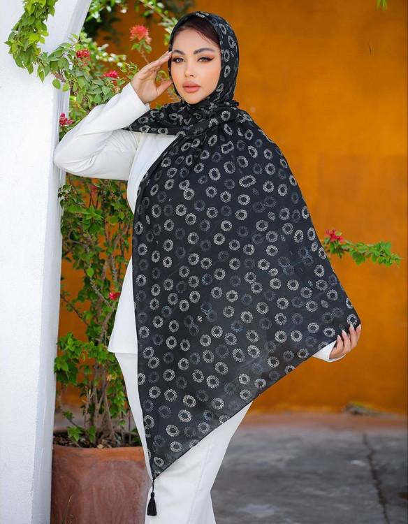 روسری نخی 4 فصل قواره بزرگ طرح زمینه سیاه کد265