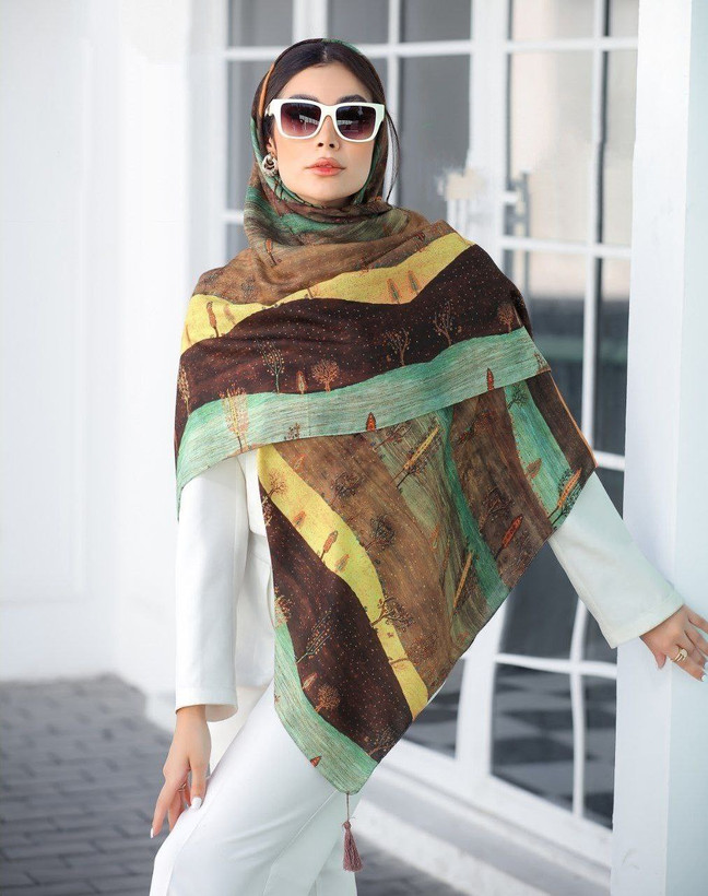 روسری نخی 4 فصل قواره بزرگ طرح طبیعت کد308