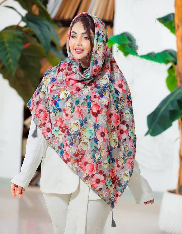 روسری نخی 4 فصل قواره بزرگ با طرح گلهای بهاری کد292