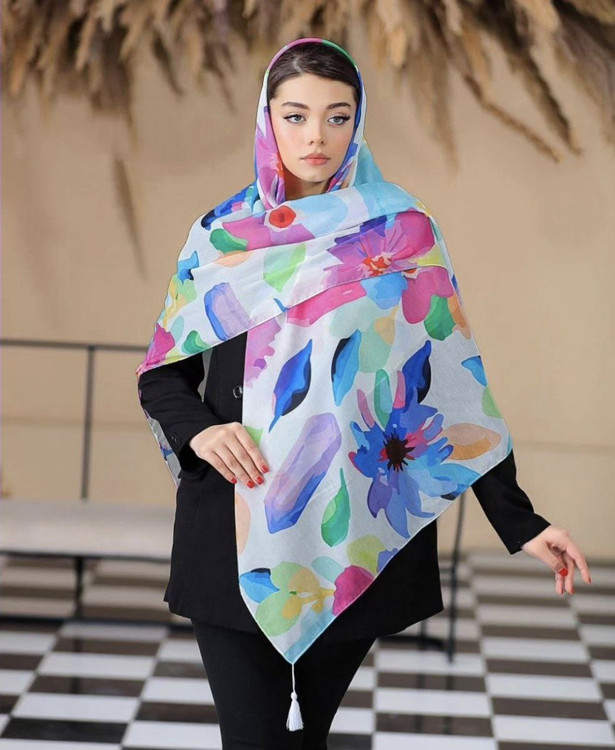 روسری نخی 4 فصل قواره بزرگ با طرح گلهای بهاری کد294