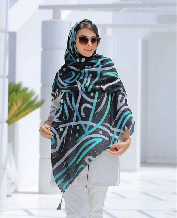 روسری نخی 4 فصل قواره بزرگ طرح اسلیمی کد299